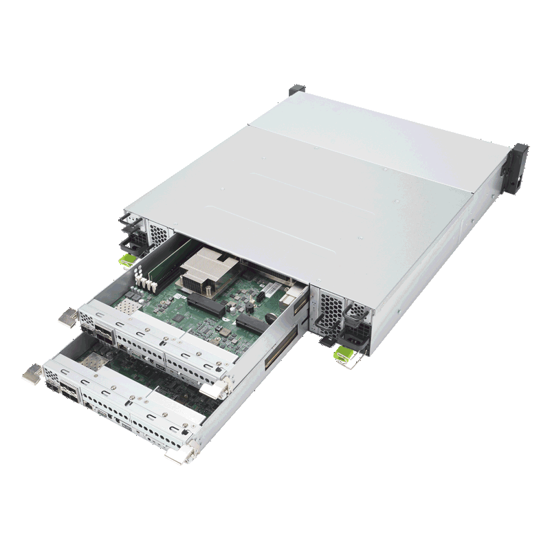 Модель выполнена в форм‑факторе 2U, что обеспечивает оптимальное размещение в стандартных серверных стойках. Конструкция продумана для удобного доступа к компонентам при обслуживании и модернизации системы.