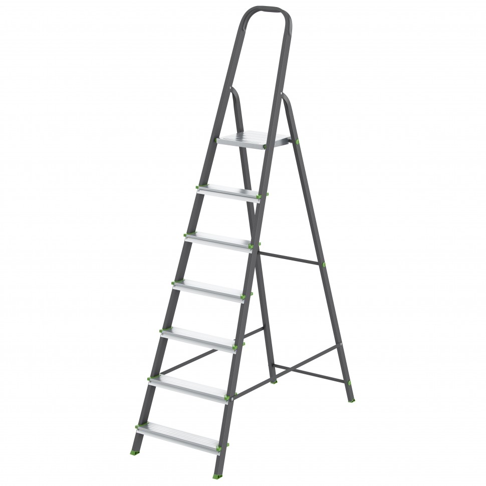 Стремянка, 7 ступеней, стальной профиль, алюминиевые ступени Россия Сибртех