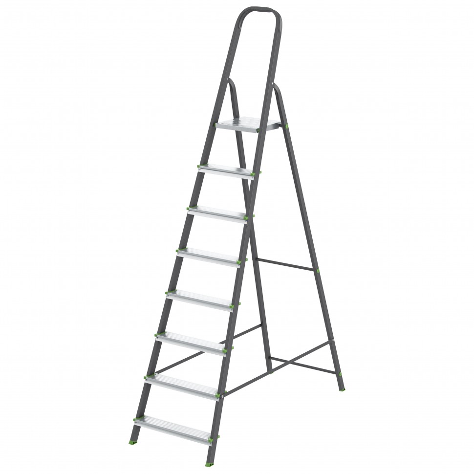Стремянка, 8 ступеней, стальной профиль, алюминиевые ступени Россия Сибртех