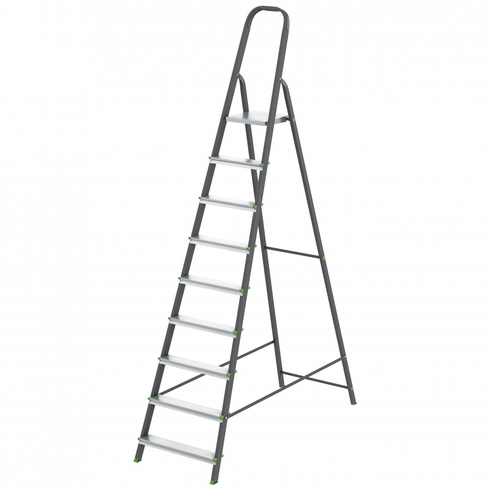 Стремянка, 9 ступеней, стальной профиль, алюминиевые ступени Россия Сибртех