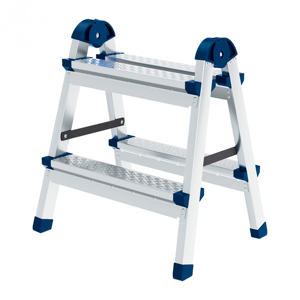 Стремянка двухсторонняя 2 ступени, сталь профиль, стальные ступени, Россия Сибртех