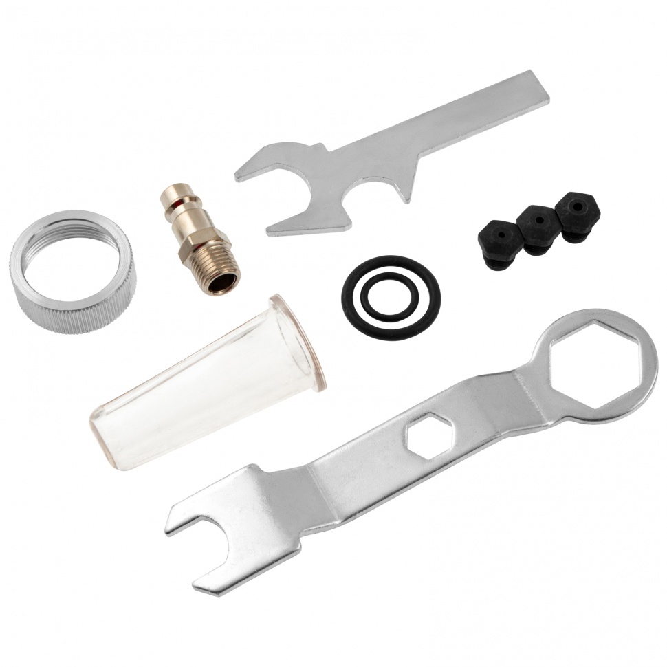Комплектация Заклепочник — 1 , уцер — 1 , Насадка под заклепку — 4 , Набор ключей и уплотнителей — 1
