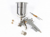 Комплектация Краскораспылитель с бачком - 1 шт, Штуцер - 1 шт, Сменное сопло диаметром 1,2 мм - 1 шт, Сменное сопло диаметром 1,5 мм - 1 шт, Сменное сопло диаметром 1,8 мм - 1 шт, Руководство по эксплуатации и гарантийный талон - 1 шт