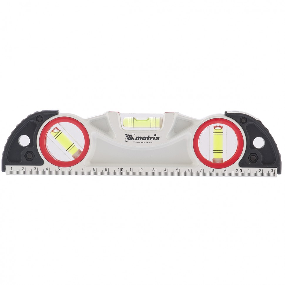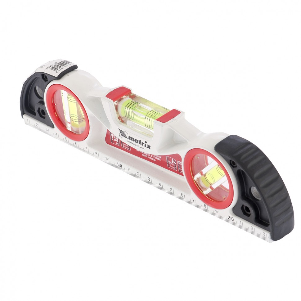 Алюминиевый литой уровень Matrix 34910 длиной 235 мм, фрезерованный, с 3 глазками и двумя ударными площадками, предназначен для проверки поверхностей на отклонение от горизонтали, вертикали и угла 45 градусов. Инструмент значительно повышает точность проводимых работ, пригодится частным мастерам и профессионалам на стройплощадке, при выполнении ремонта и монтаже различных конструкций.Для определения отклонения вертикали 90 градусов необходимо использовать пузырьковую ампулу только в верхнем положении уровня. Только базовая поверхность является рабочей (противоположная ампуле 180 градусов).ПреимуществаУровень изготовлен из прочного и коррозионностойкого алюминиевого профиля.Контроль при установке пузырьковых ампул осуществлен электронным методом, это повышает надежность устройства.Фрезерованная нижняя грань позволяет снизить погрешность до 0,5 мм/м.Две ударные площадки делают возможным дополнительное выравнивание материалов с помощью небольшой резиновой киянки.На корпусе уровня имеется шкала для проведения линейных замеров.Инструментом длиной 235 мм удобно работать в труднодоступных местах.