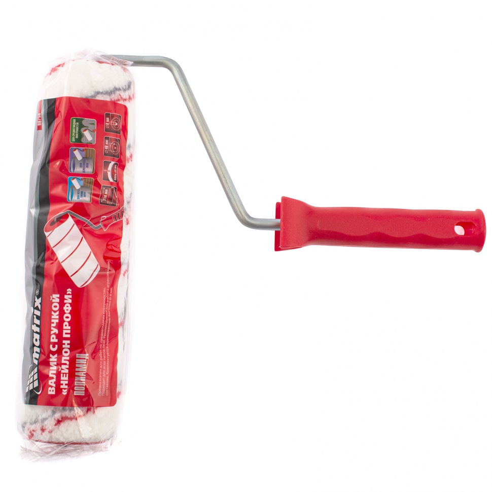 Валик Matrix «Нейлон Профи» 80758 шириной 250 мм, с полиамидным ворсом длиной 12 мм, диаметром ролика 48 мм и диаметром ручки 8 мм предназначен для нанесения любых типов лакокрасочных материалов на поверхности с гладкой текстурой и небольшим рельефом. Ширина 250 мм позволяет эффективно и быстро окрашивать большие площади: стены, потолки, фасады и т.д. Высокое качество работ обеспечивает полиамидная шубка с длиной ворса 12 мм.ПреимуществаПолиамидная шубка обладает наилучшей формостойкостью, износостойкостью и краскообменными свойствами, поэтому максимально эффективно окрашивает даже неровные поверхности.Ворс из полиамида особенно устойчив к разрывным нагрузкам, не осыпается и надолго сохраняет высокие эксплуатационные свойства.Свободное вращение ролика в сочетании с высококачественным ворсом обеспечивают максимальную отдачу ЛКМ на окрашиваемую поверхность и снижают расход материалов.Благодаря быстросъемной конструкции валик легко демонтируется с бюгеля для промывки и замены.Шубка приклеена к ролику по технологии Termofusion, поэтому она защищена от деформации и отслаивания, в том числе при длительном использовании.Бесшовная структура шубки и обработанные края ролика позволяют наносить краску аккуратно, без следов и полос.Оцинкованный бюгель не подвержен образованию коррозии, это увеличивает срок службы инструмента.