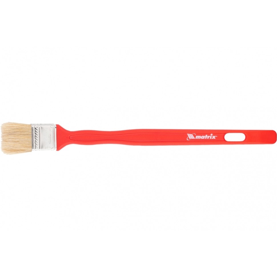 Радиаторная кисть Matrix Color Line «ЭМАЛИ» 83357 шириной 35 мм и толщиной 10 мм предназначена для работы с эмалями, в том числе на акриловой, алкидной основе и на основе растворителя. Натуральная щетина устойчива к износу и воздействию агрессивных жидкостей, а благодаря расщепленным концам хорошо впитывает и отдает краску. Высокая плотность щетины позволяет получить качественное покрытие. Кисть имеет удлиненную рукоятку, удобную для работы в труднодоступных местах.ПреимуществаНатуральная светлая щетина двойной выварки обеспечивает отличный забор и удержание краски, а также равномерно распределяет ее по поверхности.Щетина надежно закреплена с помощью тщательно подобранной эпоксидной смолы, клиньев и бандажа.Пластиковые клинья не деформируются при мытье или замачивании, что обеспечивает долговечность инструмента.На бандаж нанесено специальное покрытие для защиты от ржавчины.Форма рукоятки продумана таким образом, чтобы мастер не уставал даже при длительной работе.Для удобного хранения предусмотрено отверстие на ручке, за которое кисть можно подвесить.