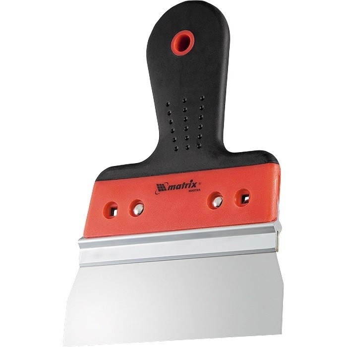 Фасадный шпатель Matrix 85516 из нержавеющей стали, с полотном шириной 300 мм и 2-компонентной ручкой, используется для нанесения и выравнивания поверхностей с помощью растворов, нанесения декоративных штукатурок и т.д. Позволяет решить как бытовые, так и профессиональные задачи на строительной площадке.ПреимуществаРабочее полотно из высококачественной нержавеющей стали устойчиво к износу и образованию коррозии, а также легко очищается после окончания работ.Алюминиевое ребро жесткости повышает устойчивость рабочего полотна к деформации и рабочий ресурс инструмента.За счет ширины полотна 30 см удобно набирать большое количество смеси.Двухкомпонентная ручка специальной изогнутой формы не проскальзывает в ладони и делает работу шпателем максимально удобной.В рукоятке имеется отверстие для организации подвесного хранения.