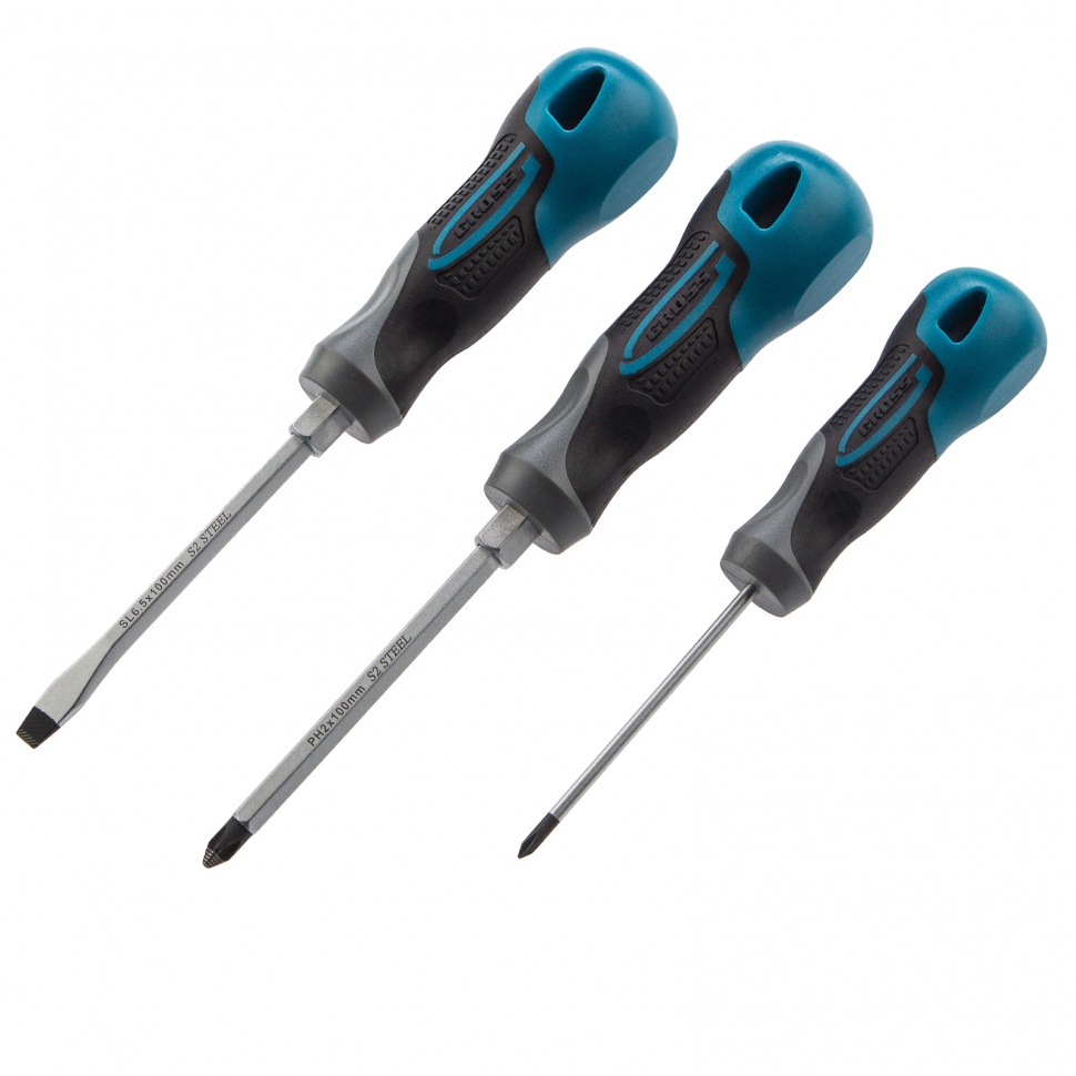 Набор отверток комбинированный 3 шт, S2, трехкомпонентная рукоятка Gross