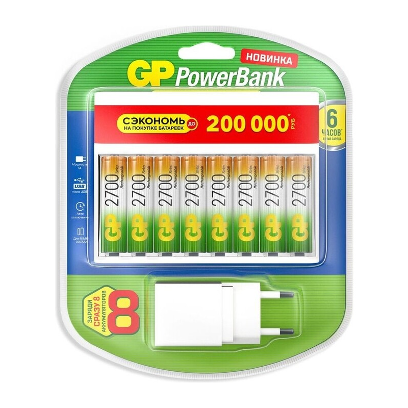 Представьте, что Вам нужно одновременно зарядить аккумуляторы для видеоняни, радиоуправляемого вертолета, вибромассажера и беспроводной клавиатуры. Да, в большой семье порой возникают неразрешимые задачи! Без паники: зарядное устройство GP 270AAHC/CPBXL-2CR8 сэкономит родителям массу времени и сил и избавит от регулярных затрат на запасные батарейки. И никто не расстроится от того, что не работает любимая игрушка. А главное, не нужно планировать, что и в каком порядке вам заряжать!